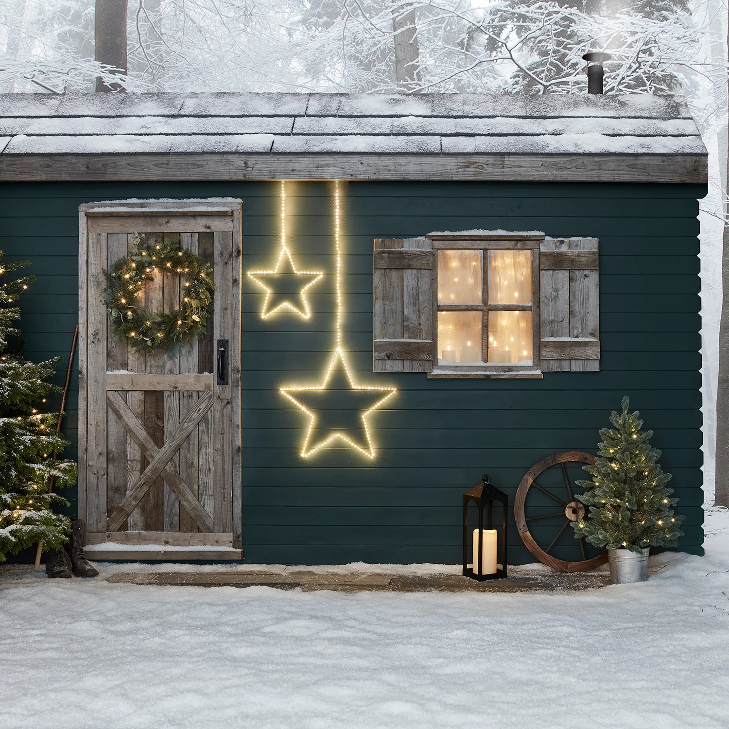 Our hanging star light is an elegant addition to your home for Christmas. With the option to display it indoors or out, it’s perfect for hanging on a wall or in a window to add a festive glow. || Measuring at a diameter of 38cm, the delicate outline of the star shape is lit by 134 warm white LEDs to create a silhouette effect. Simply use the plug included to plug in the light using the 5m lead cable and set it to the 6 hour timer for automatic illumination at the same time every night. For the ultimate look, pair with our larger hanging star (sold separately) and style as a duo.